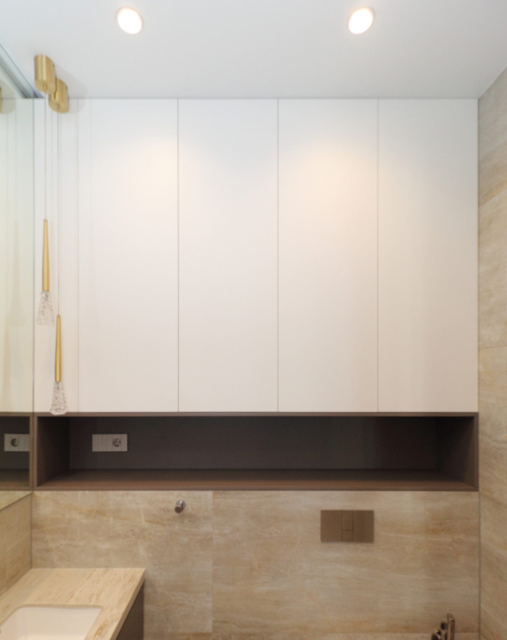 Используемая фурнитура: Петли Blum Clip top без пружины в комплекте с механизмом Tip-on, Австрия. Направляющие на ящиках скрытого монтажа Blum Tandem Blumotion, Австрия. Подсветка - светодиодная лента во врезном алюминиевом корпусе.